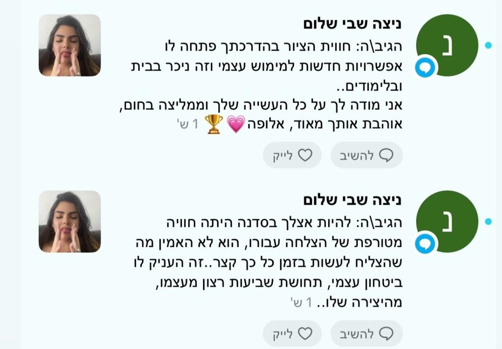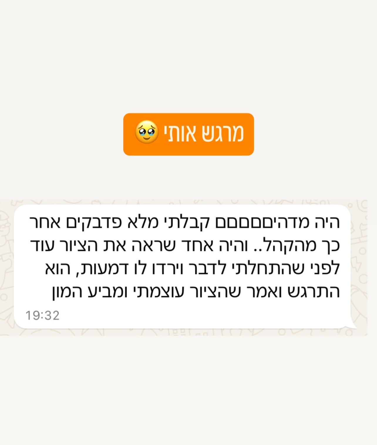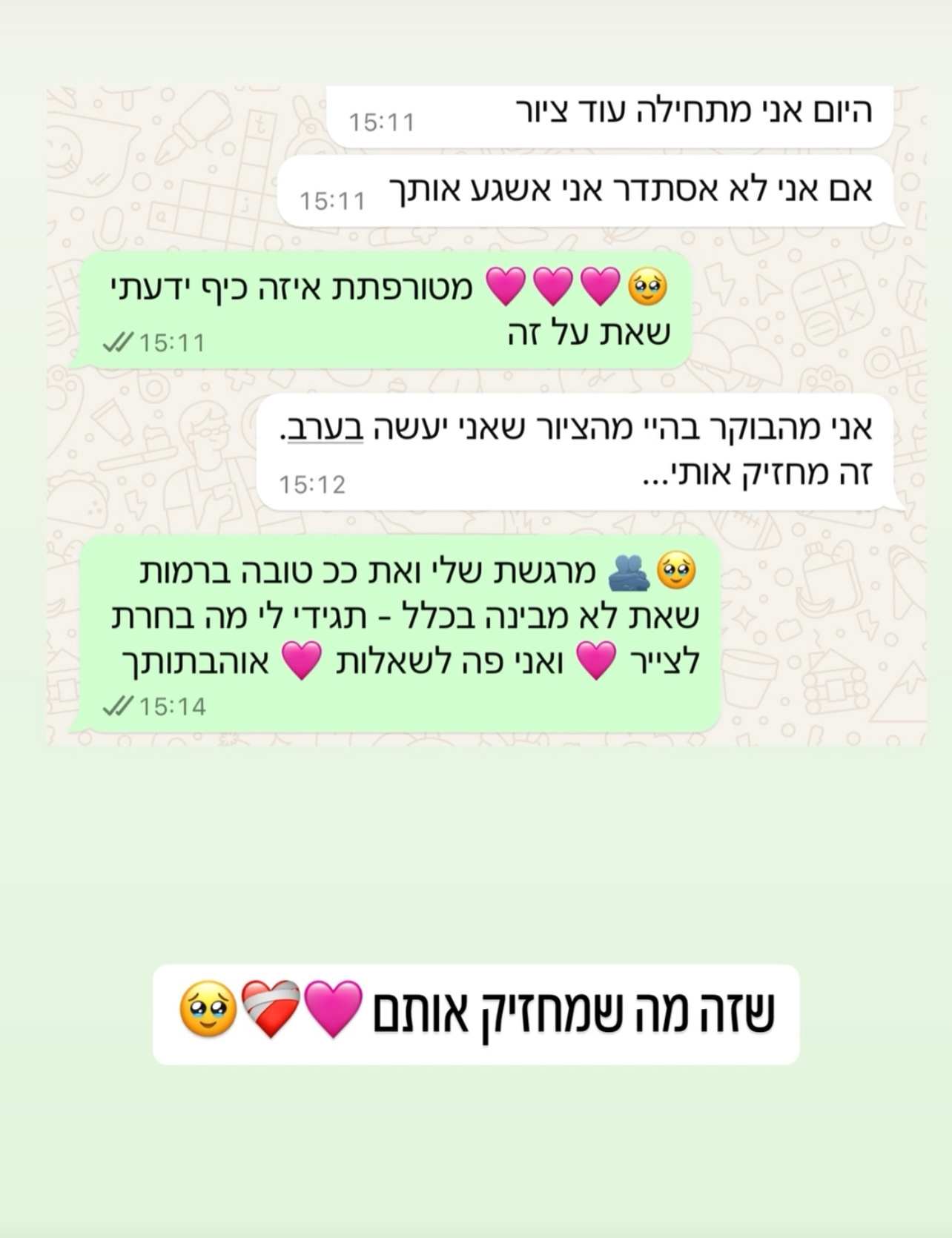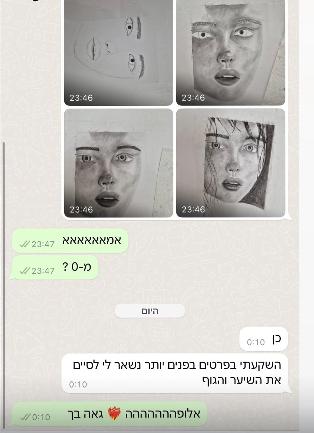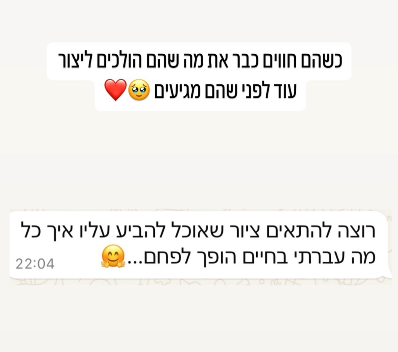 בסוף התהליך, לא רק שתדעי לצייר – תהיה לך דרך משלך לשחרר מתח, חרדה ורגשות קשים. כמו תמר, שהגיעה בלי לדעת לצייר אפילו שמש, והיום היא מציירת ברמה מקצועית.