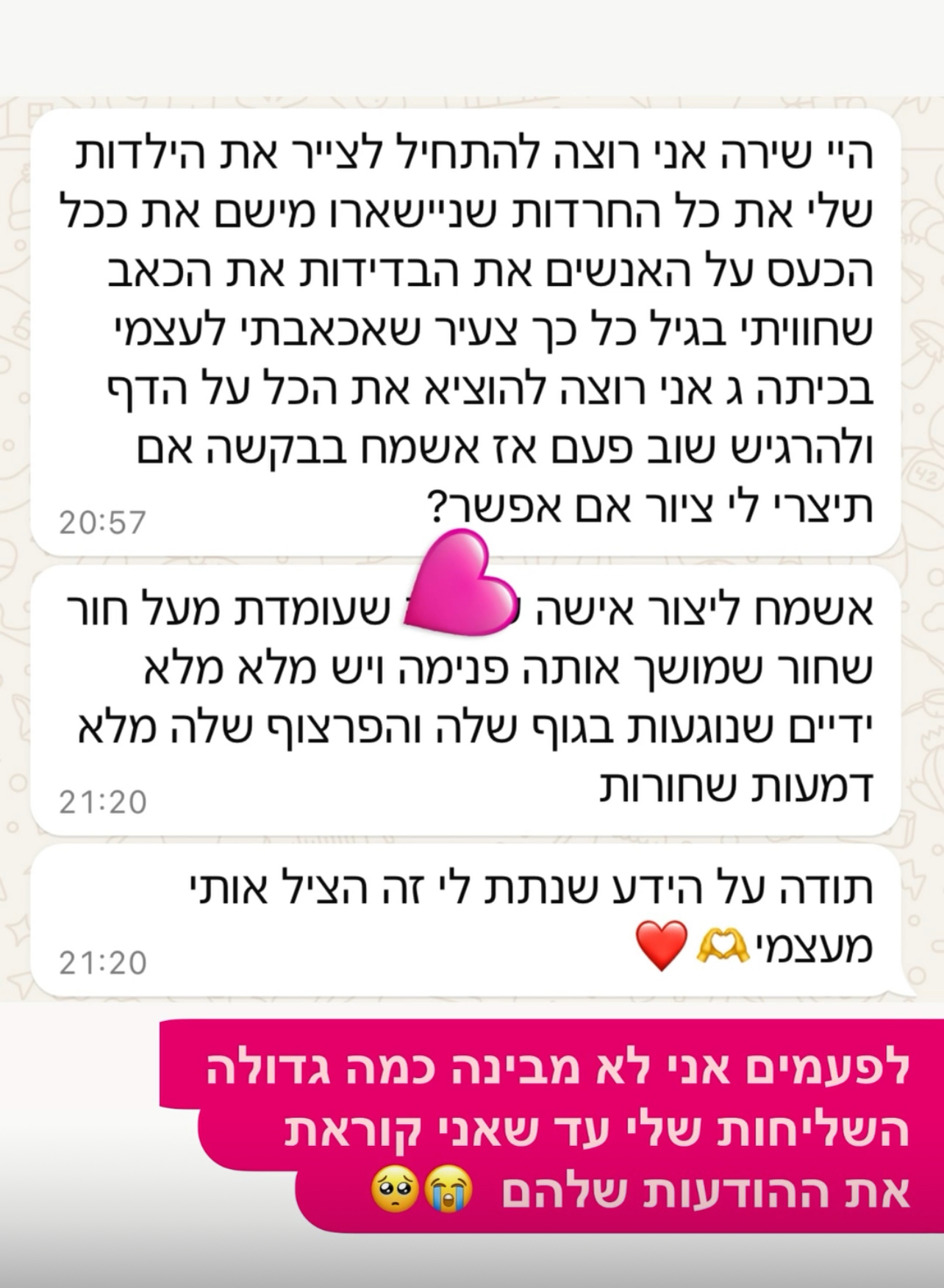 לפני שאני מספרת לך על הקורס והשיטה, אני רוצה לשתף אותך בסיפור האישי שלי.