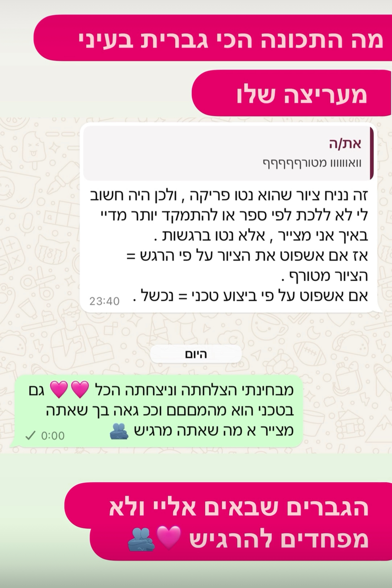 זמינה עבורך בכל שעה, עד שתרגישי בטוחה להשתמש בכלים האלה בעצמך.