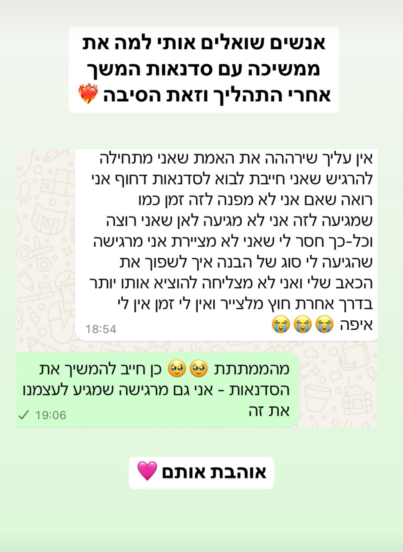 את תמיד מוזמנת לחזור לסדנה הבאה,