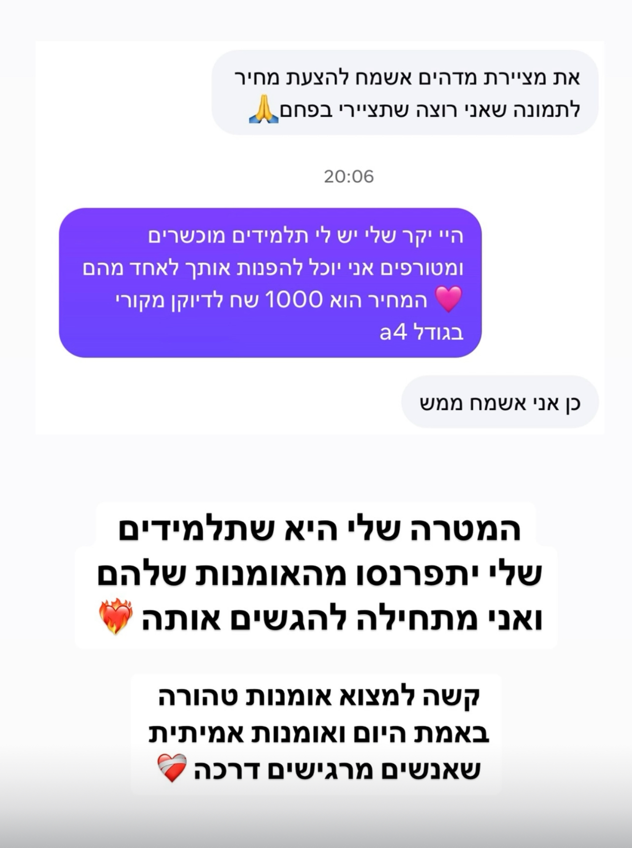 בלי לדעת לצייר, בלי שום ניסיון קודם, ובליווי אישי צמוד שיוביל אותך להצלחה.